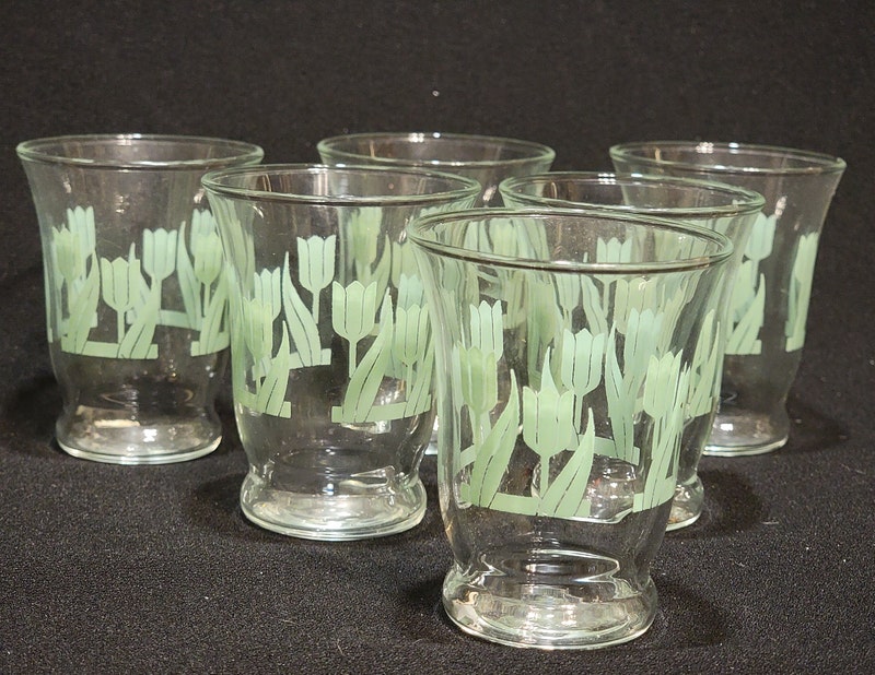 Vintage 1960s Libbey Green Mint Tulip Juice Glasses Set of 6, MCM Juice Glasses, Vintage Libbey Glasses, Vintage Green Tulip Glasses-sid-63288