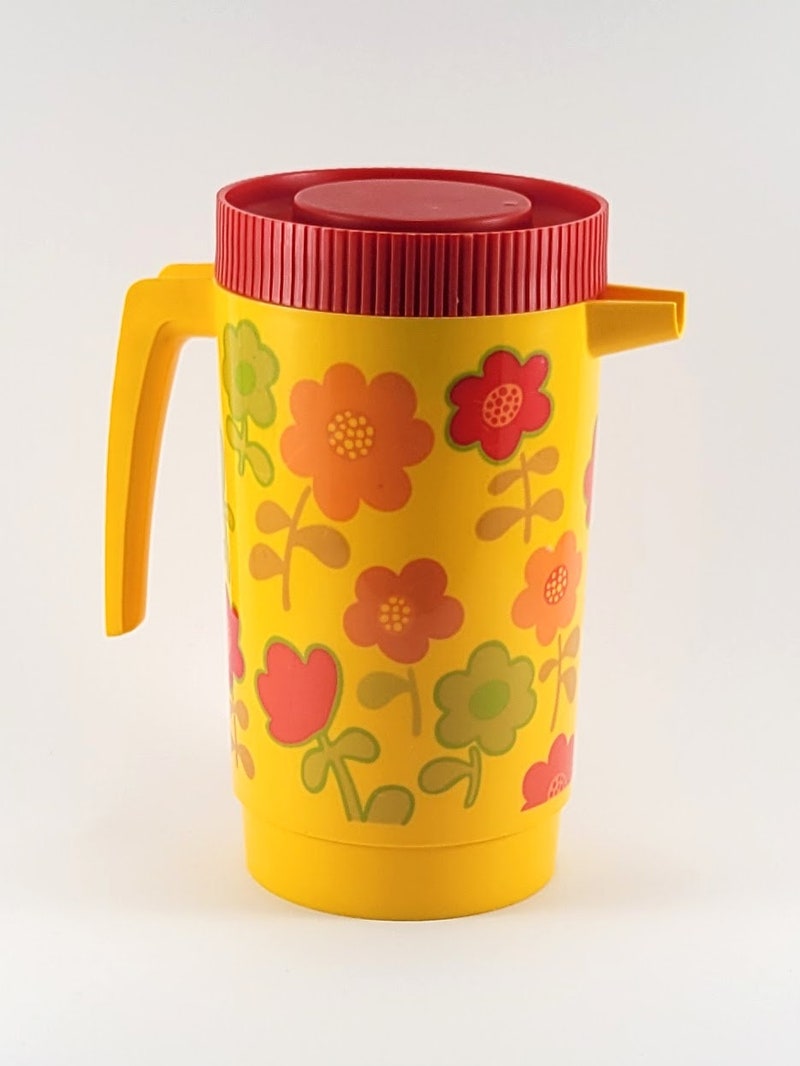 Vintage 1970's Alladinware flowered plastic pitcher + flower power-sid-71870