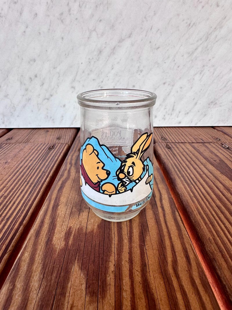 Vintage 1990's Welch's Jelly Jar - Disney's Winnie the Pooh - Pooh's Grand Adventure Juice Glass - Winnie and Bear Rabbit-sid-40607