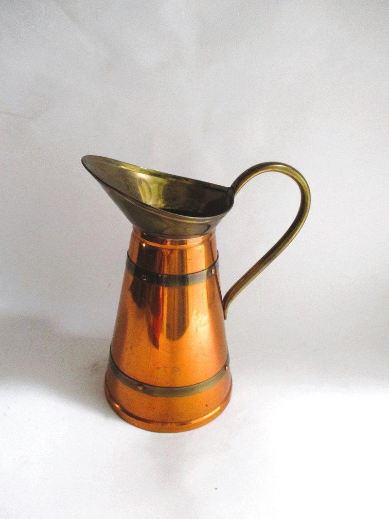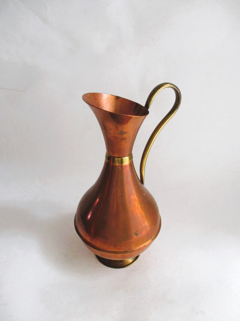 Vintage Copper Pitcher Brass Handle Petite-sid-31546