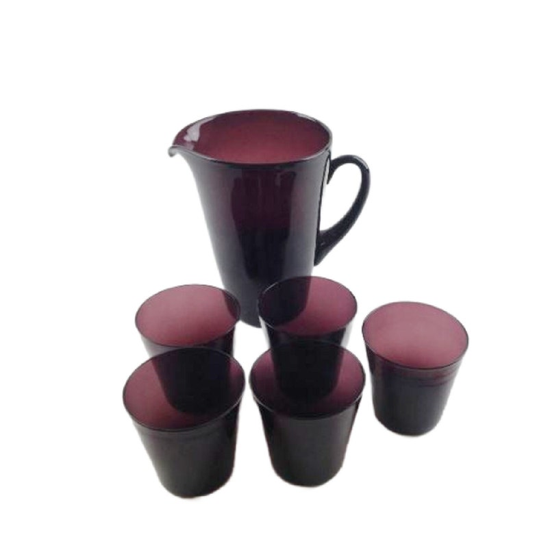Vintage Hand Blown Amethyst Pitcher Cocktail Set, 6Pc Set, Free Shipping-sid-17722