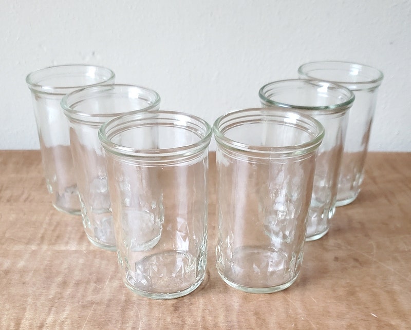 Vintage Jelly Jar Juice Glasses Diamond Star Pattern Set of 6-sid-73845