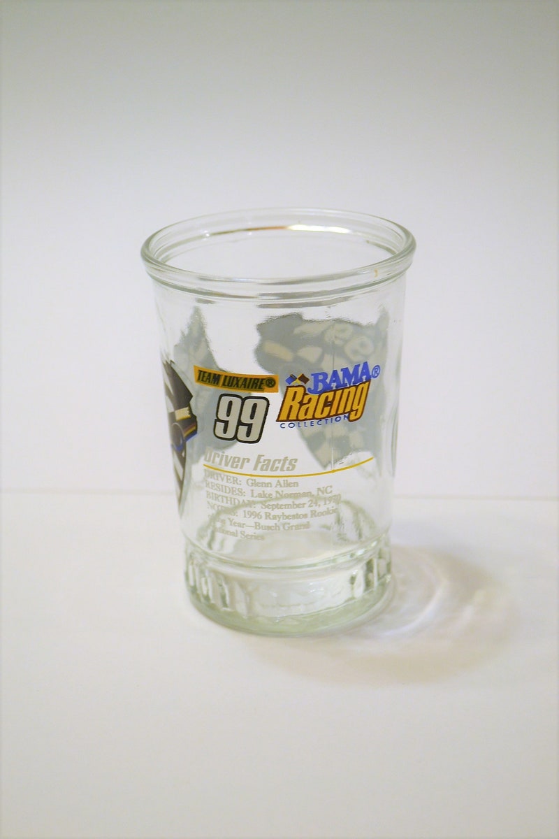 Vintage Nascar Jelly Glass Glen Allen Racing Collection Bama Jelly Jar Juice Glass PanchosPorch-sid-47936