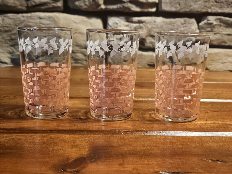 Vintage Set of 3 Federal Pink Basket Weave Juice Glasses. 3-1/2" tall.-sid-69604
