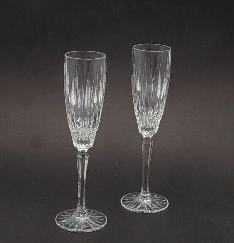 Vtg Set of 2 Mikasa Old Dublin Crystal Fluted Champagne glasses Discontinued-sid-18653