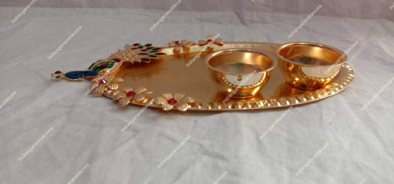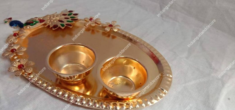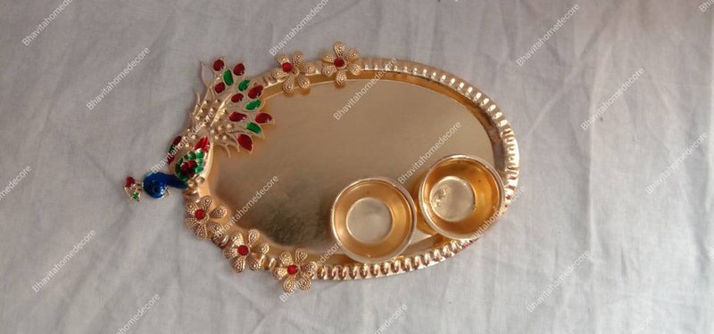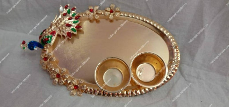 Beautiful Haldi Kumkum Holder Pooja Accessories Ethnic Peacock Design Indian Decoration God's Worship Item Roli Tilak And Candle Diya Holder