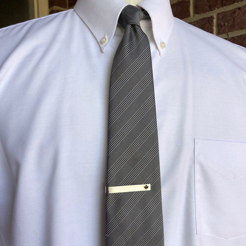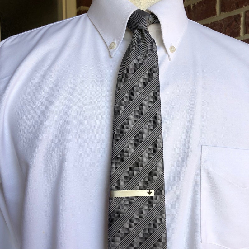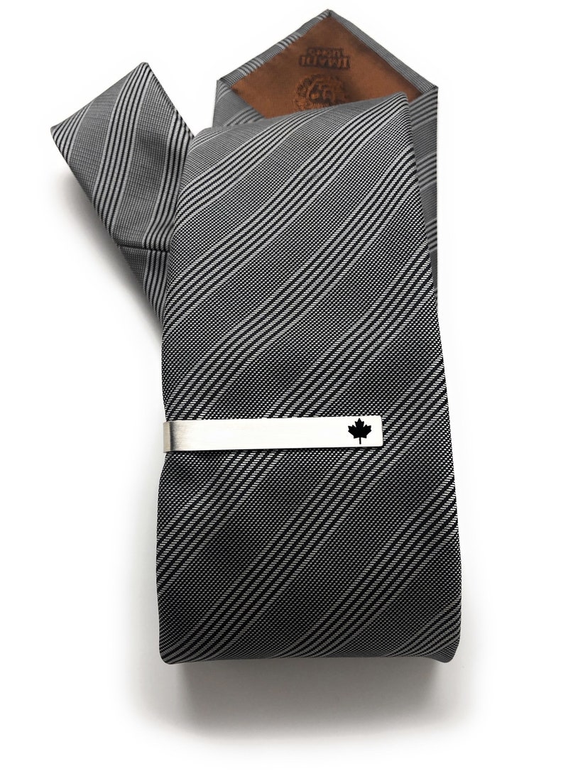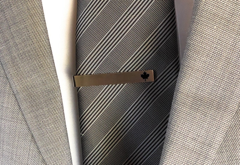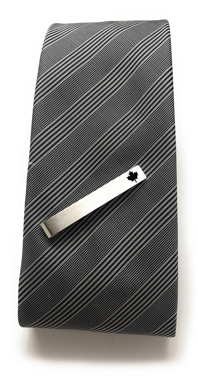 Add a touch of Canadian style to your wardrobe with our Canada Maple Leaf Tie Clip! Made of stainless steel and adorned with an embossed maple leaf in black enamel, this tie bar is the perfect accessory for any proud Canadian. It also makes a great gift for your husband, dad, or anyone who loves this great nation.