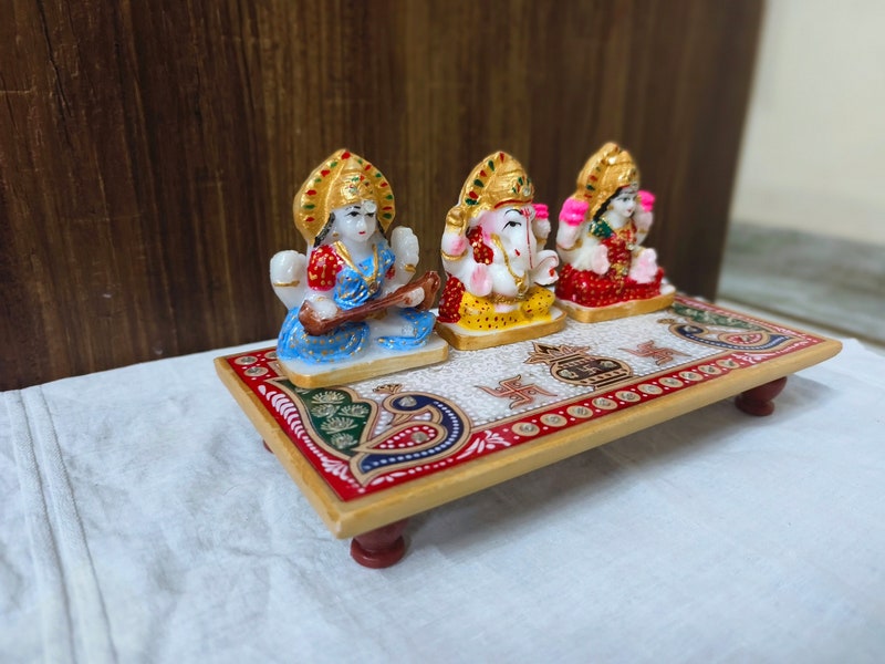 Product Item : Marble Pooja Chowki With Laxmi Ganesh Saraswati (God Of Wisdom Prosperity Wealth Knowledge)