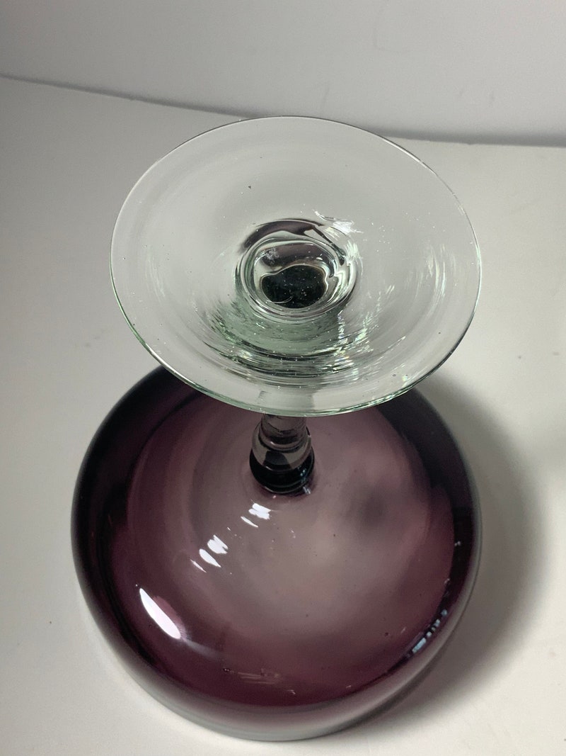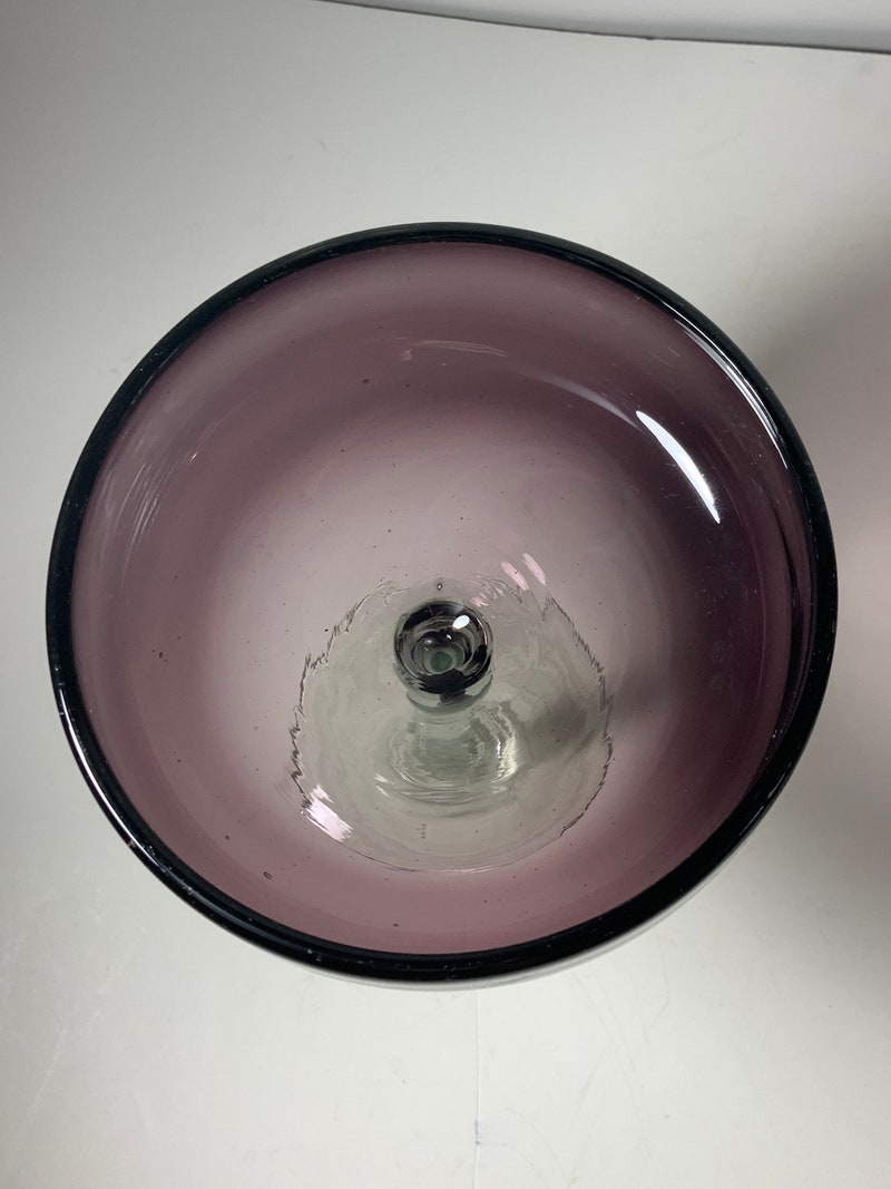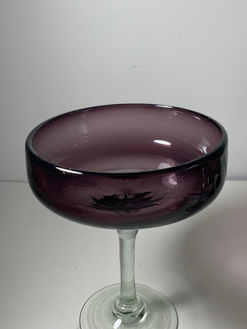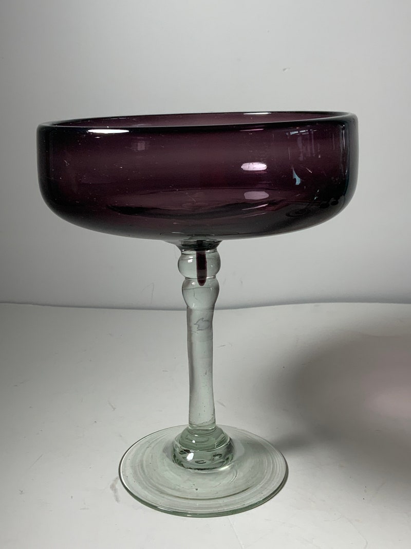 Set of 2 Mexican Hand Blown Amethyst Glass Margarita Glasses 6.5 in.-sid-98922