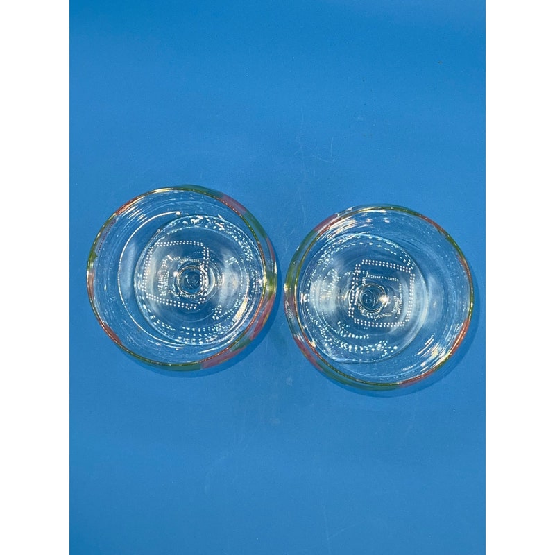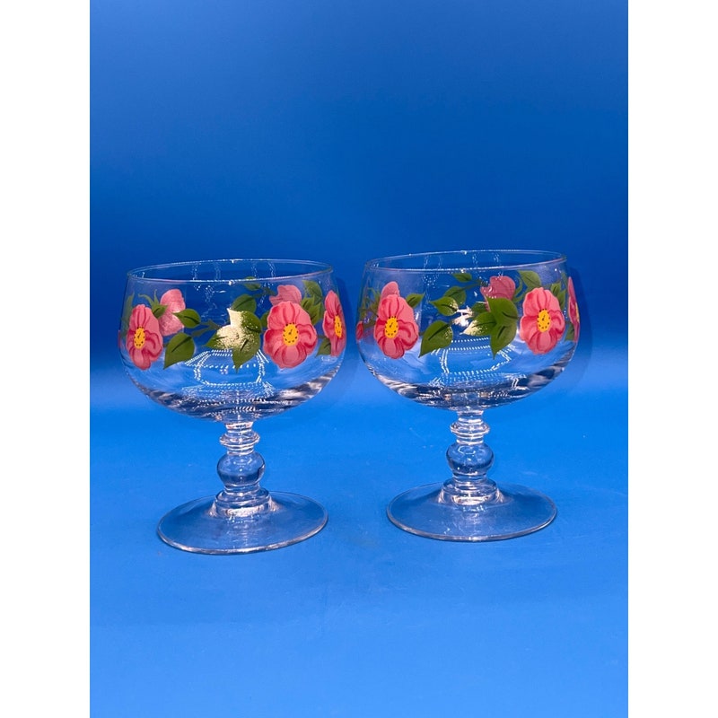 This set of two Franciscan Pink Desert Rose Margarita glasses is hand-painted and signed. With a large size and beautiful rose design, these pink glasses are a standout addition to any glassware collection.