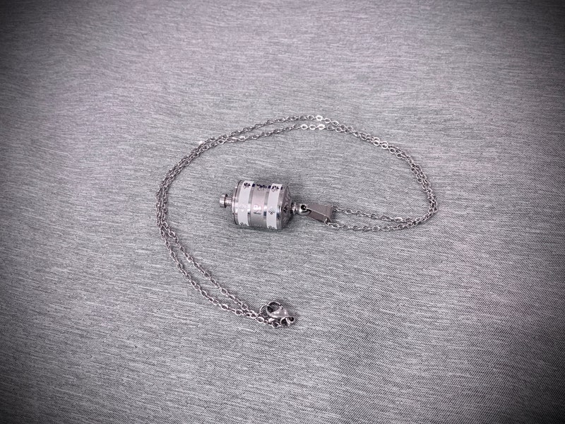 Stainless Steel Tibetan Prayer Wheel White and Silver Metal Rotating Pendant Hollow Stash Necklace & Mini Spoon for Ash/Oil/Powder/Sand/etc