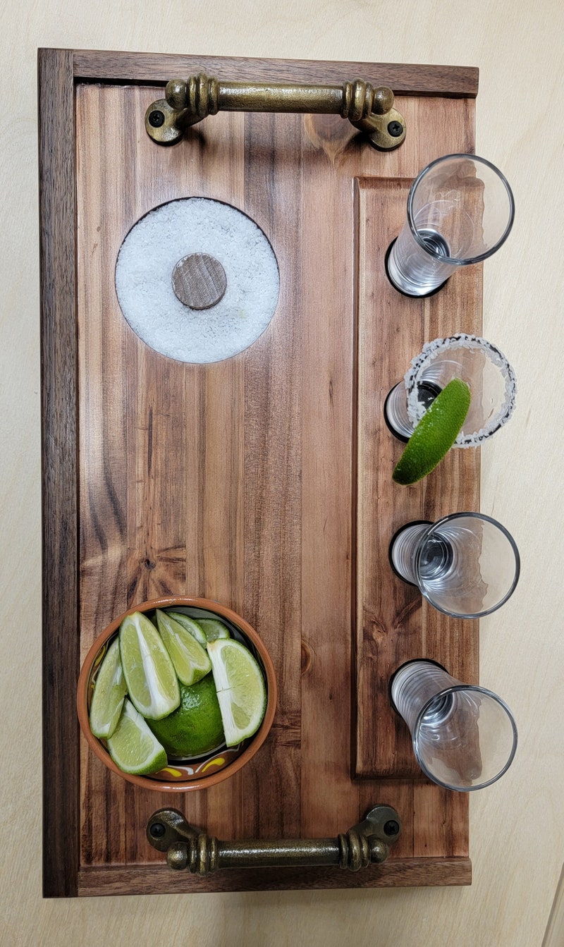 Tequila Flight Board Cinco De Mayo Handmade, Custom Tequila Shooter Board, Tequila Shot Board Gift, Graduation, Wedding Gift, Shot Glass-sid-59517