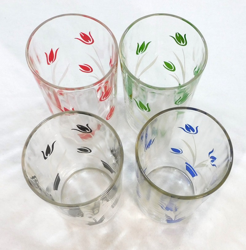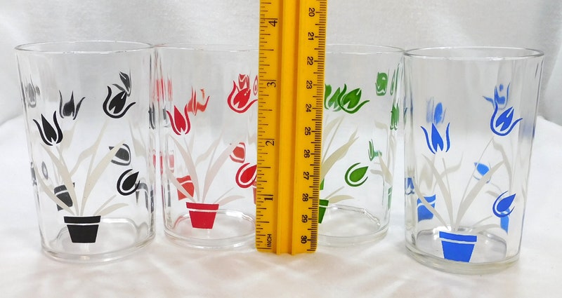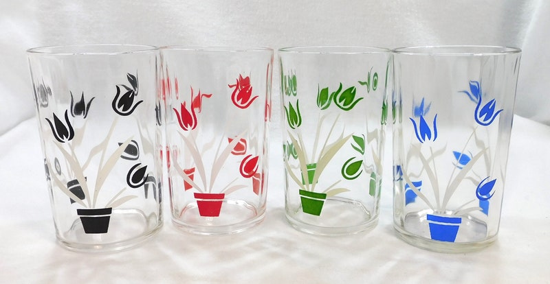 Be the first to review “Vintage 1930s Depression Set 4 Swanky Swig Juice Glasses Tulip Pattern Black Blue Red Green 3.5" Tall EUC Kitchen Decor-sid-34047” Cancel reply
