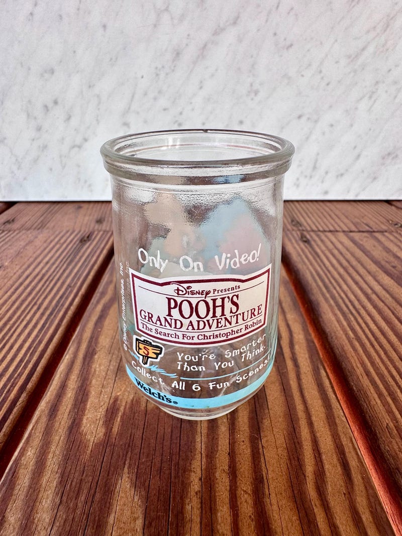 Vintage 1990's Welch's Jelly Jar – Disney's Winnie the Pooh – Pooh's Grand Adventure Juice Glass – Winnie and Bear Rabbit-sid-40607