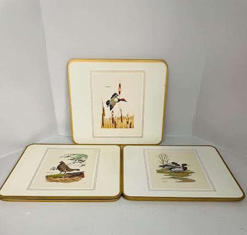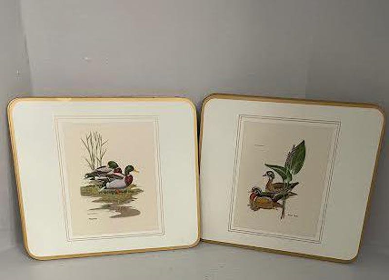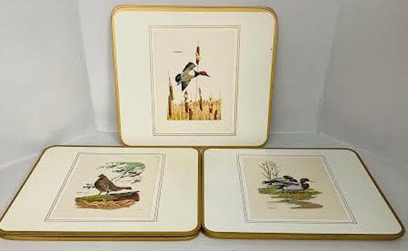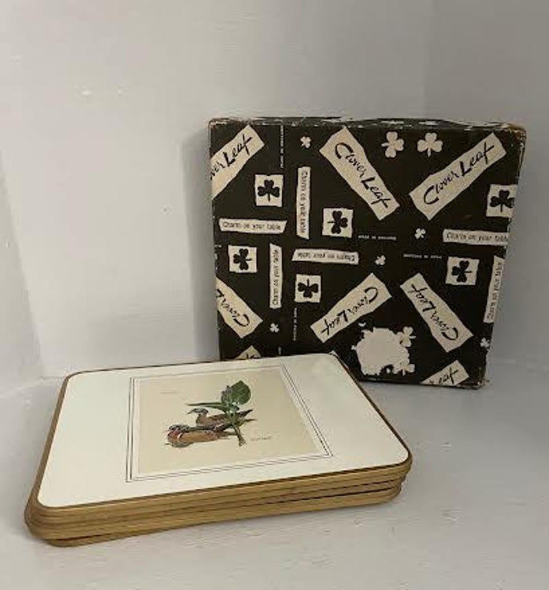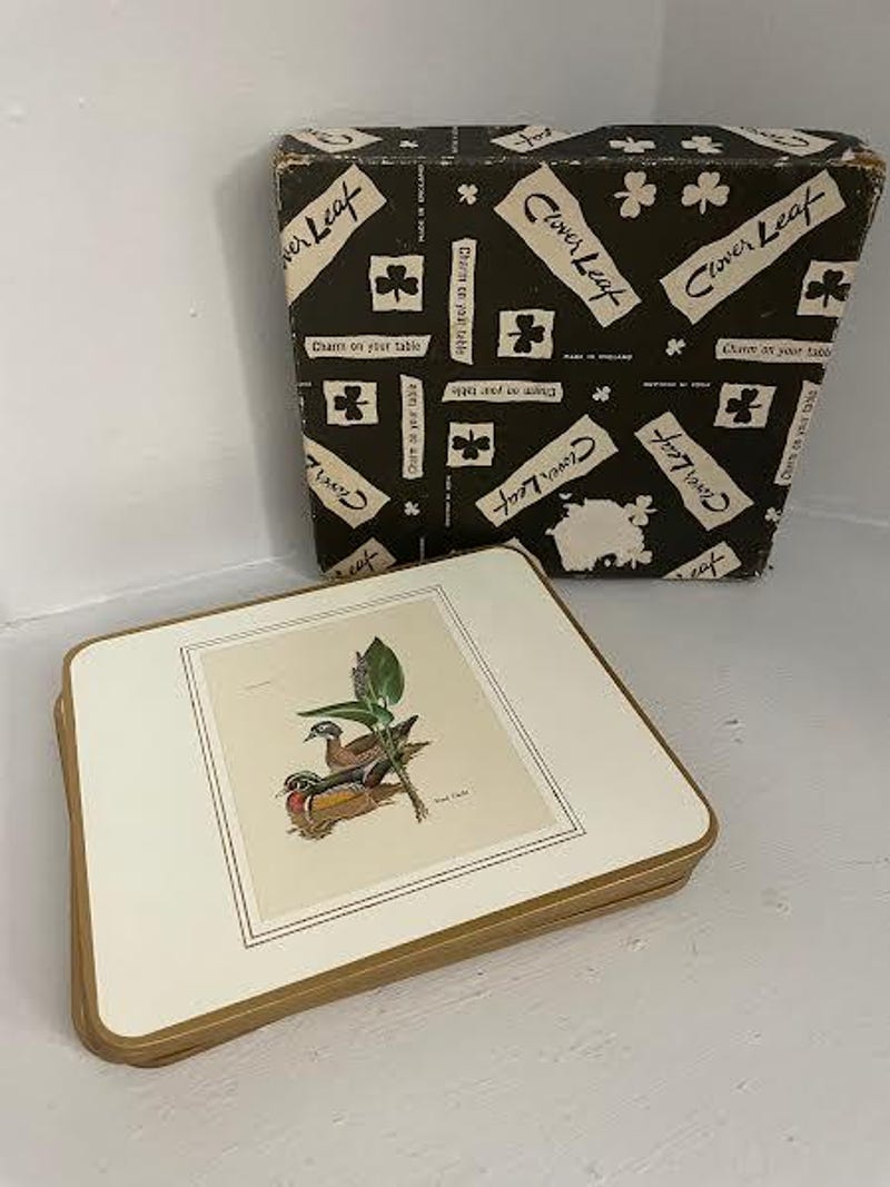 Vintage 6 Clover Leaf Placemats Table Mats Square Placemats 7.25' in. Still Wildlife Design In Original Box Made in England