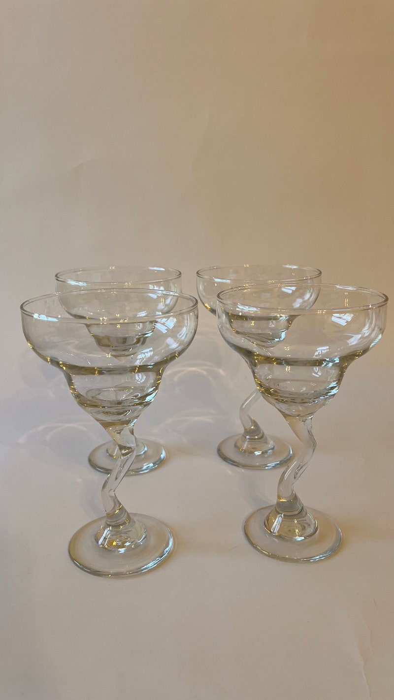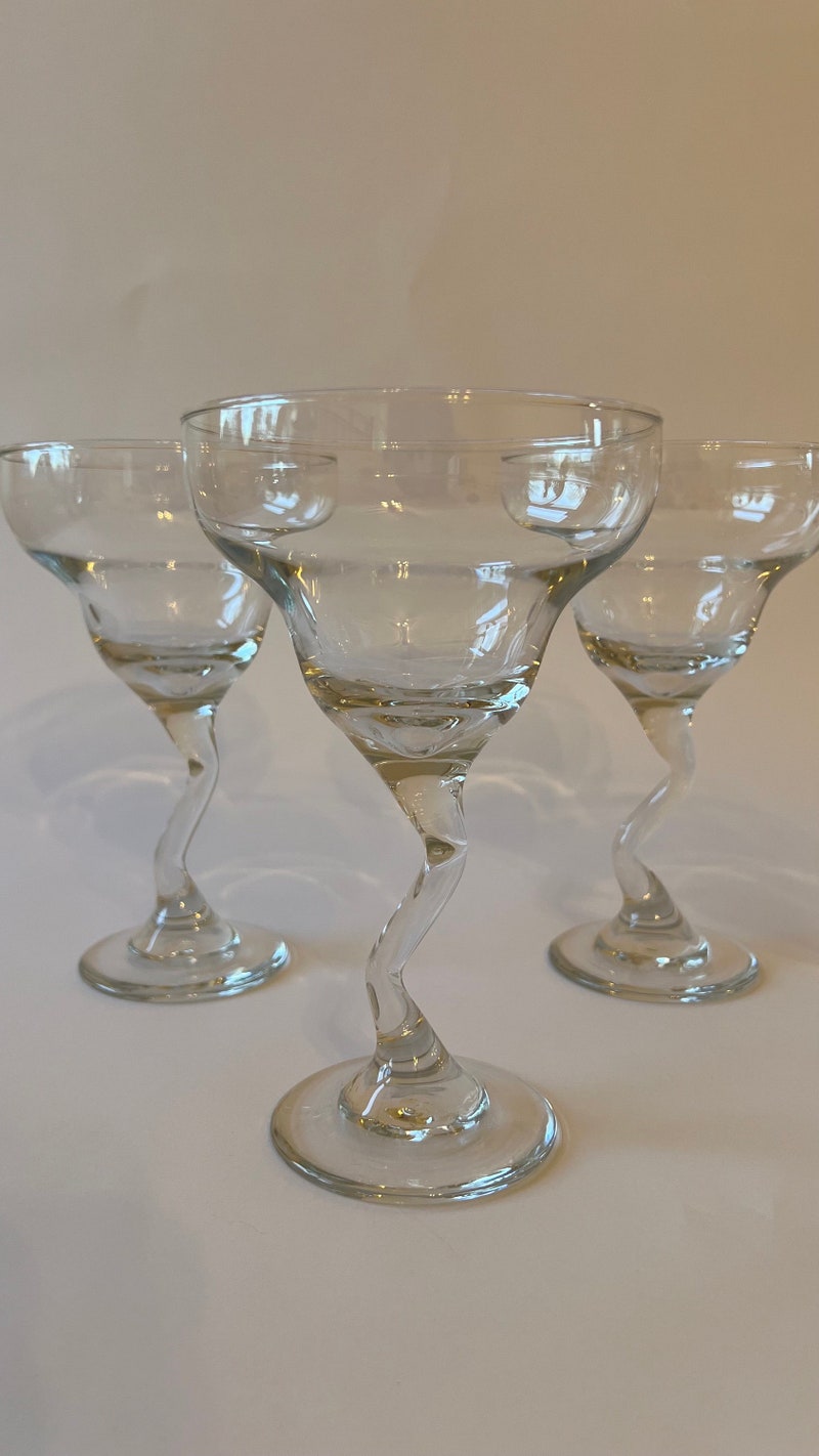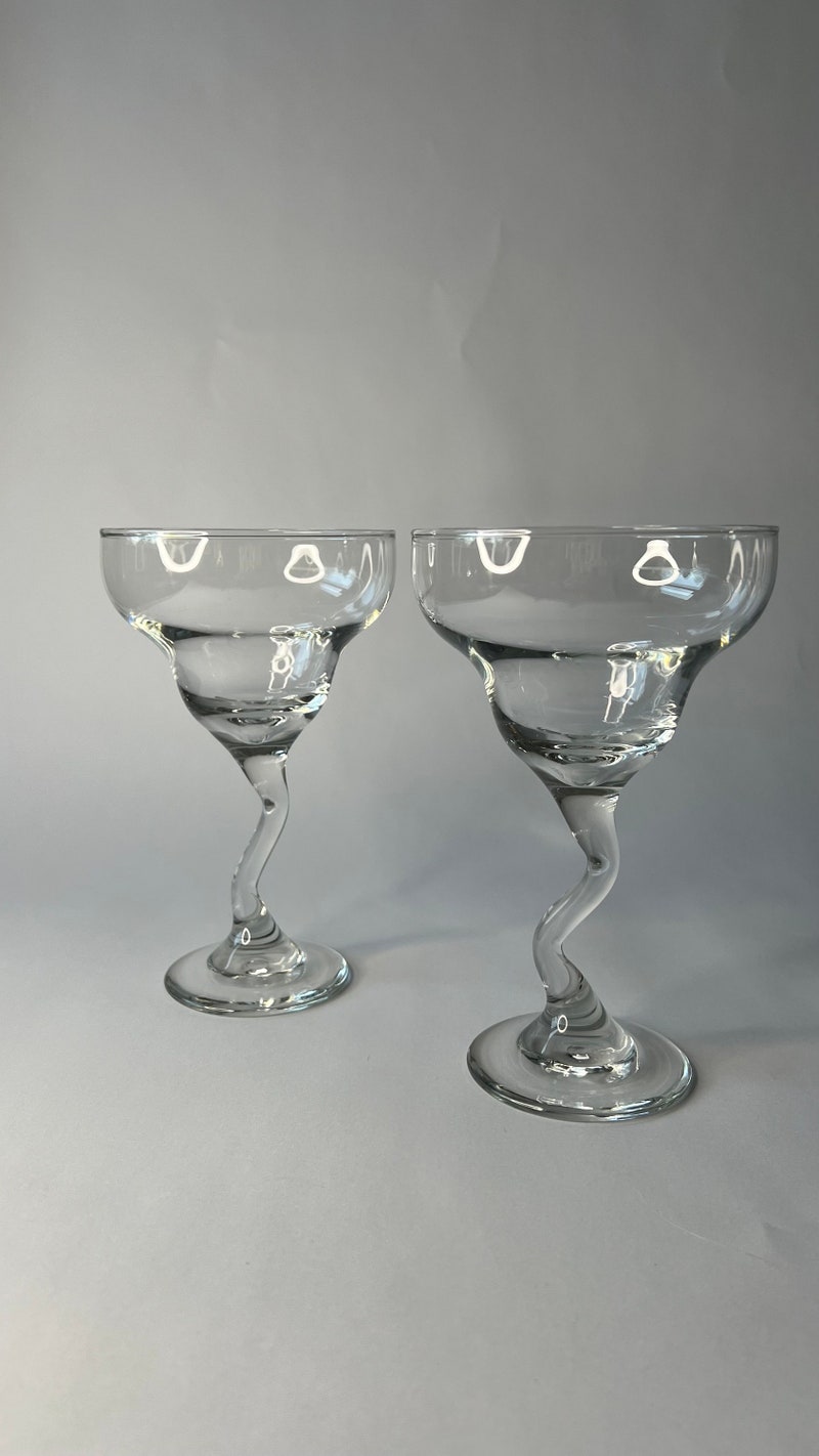 Vintage Clear Squiggly Stem Margarita Glasses Libbey Wavy Z Stem Glasses MCM Margarita Glass-sid-84661