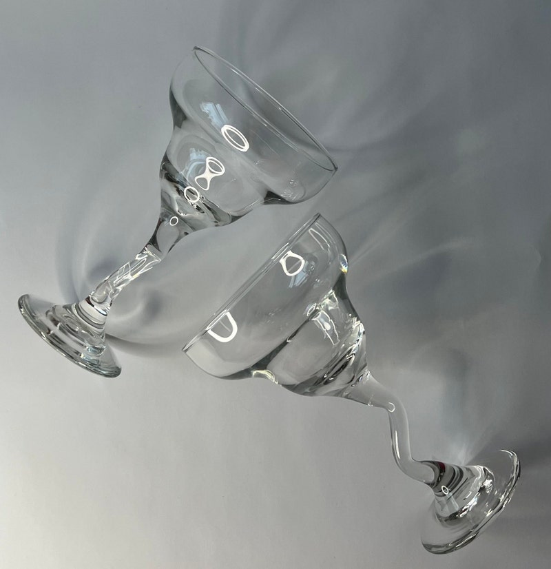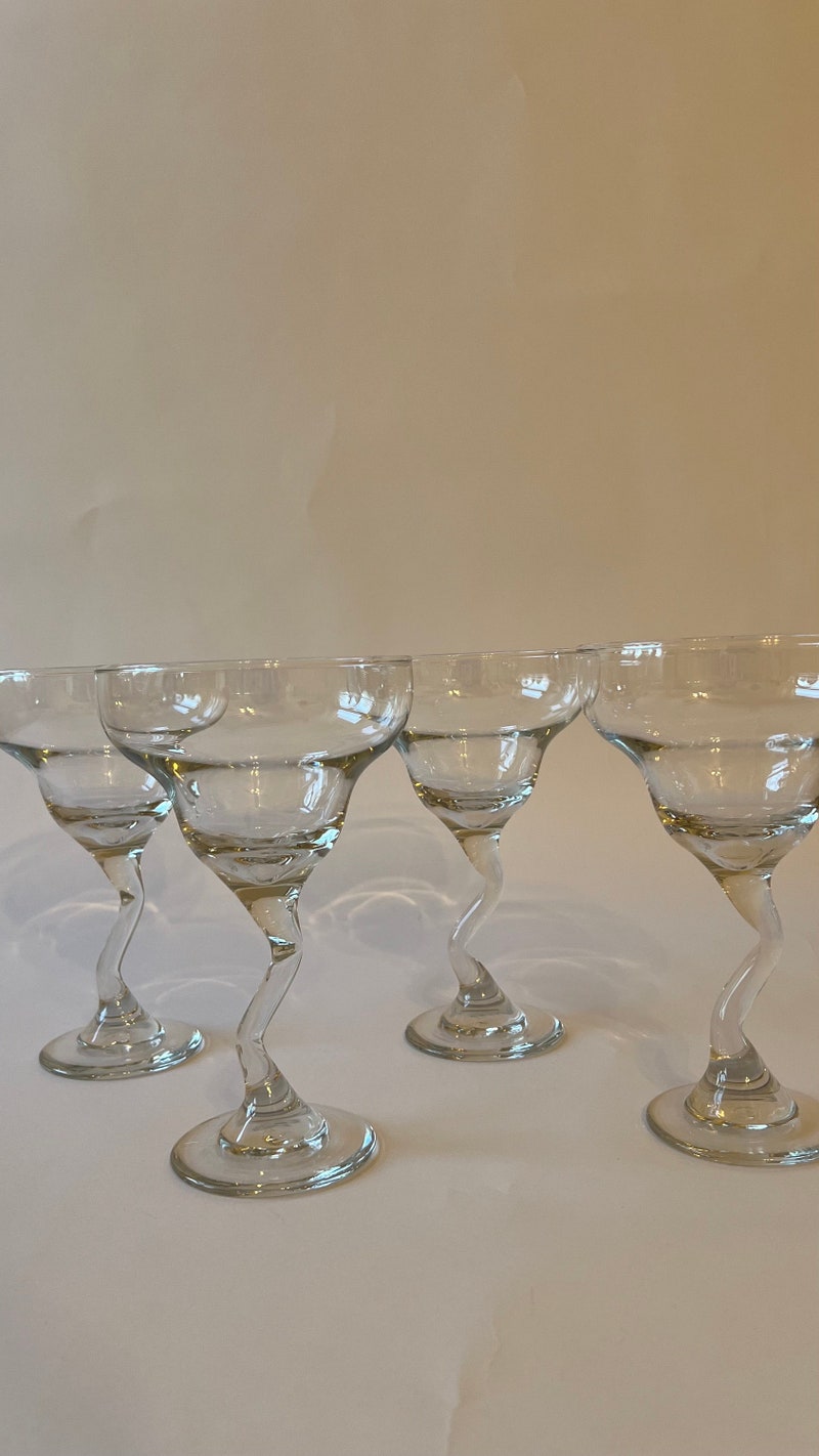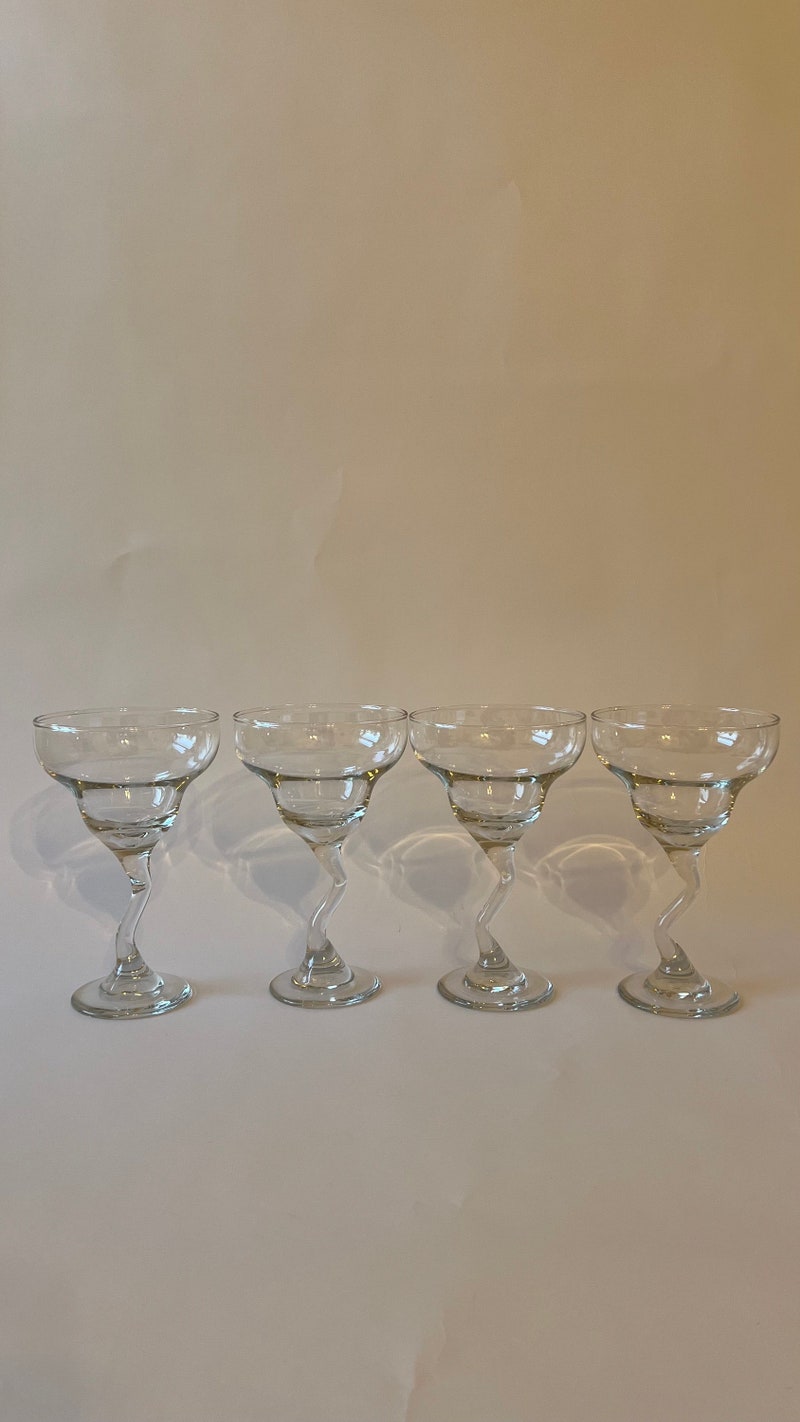 Vintage Clear Squiggly Stem Margarita Glasses Libbey Wavy Z Stem Glasses MCM Margarita Glass-sid-84661