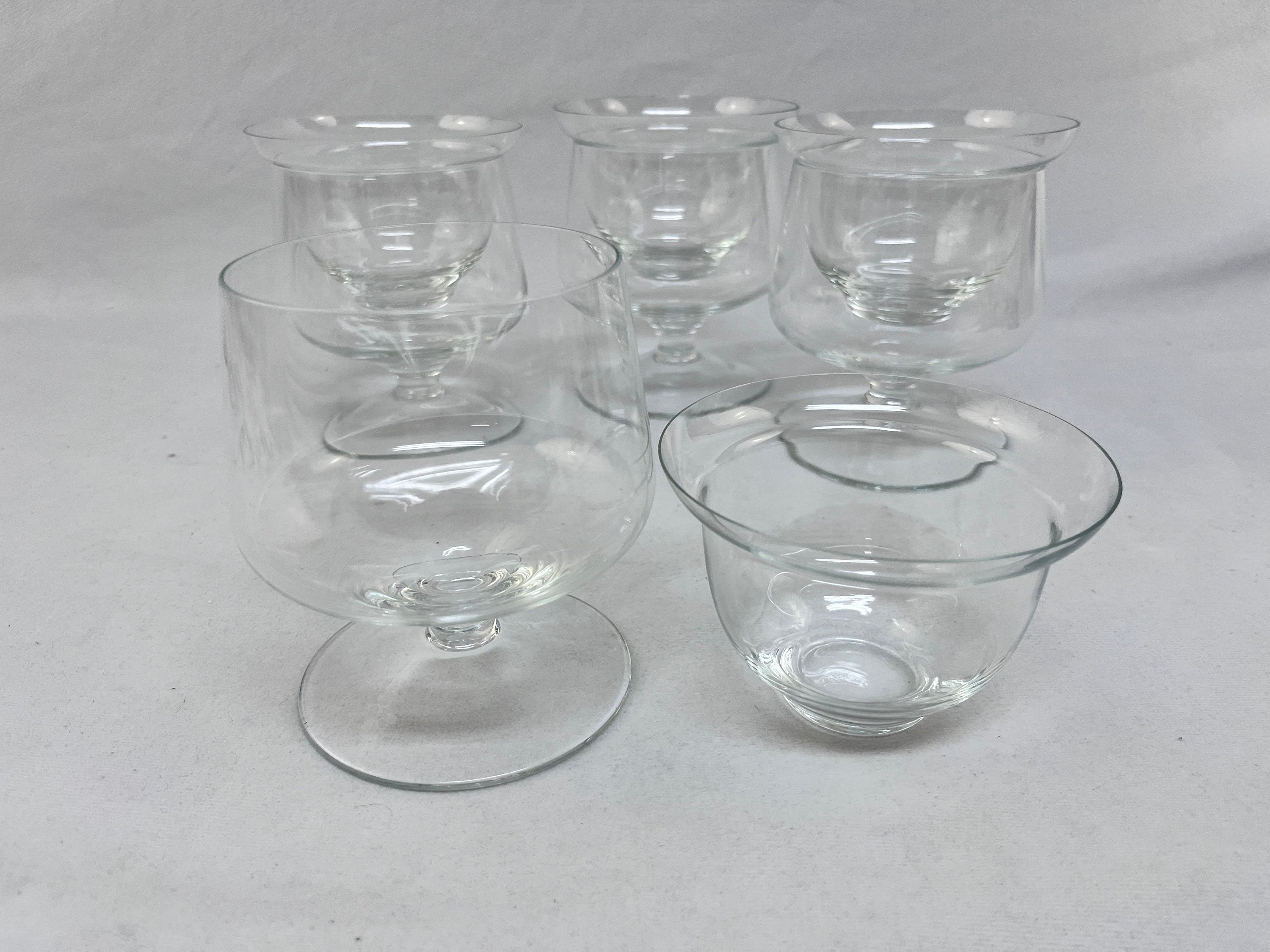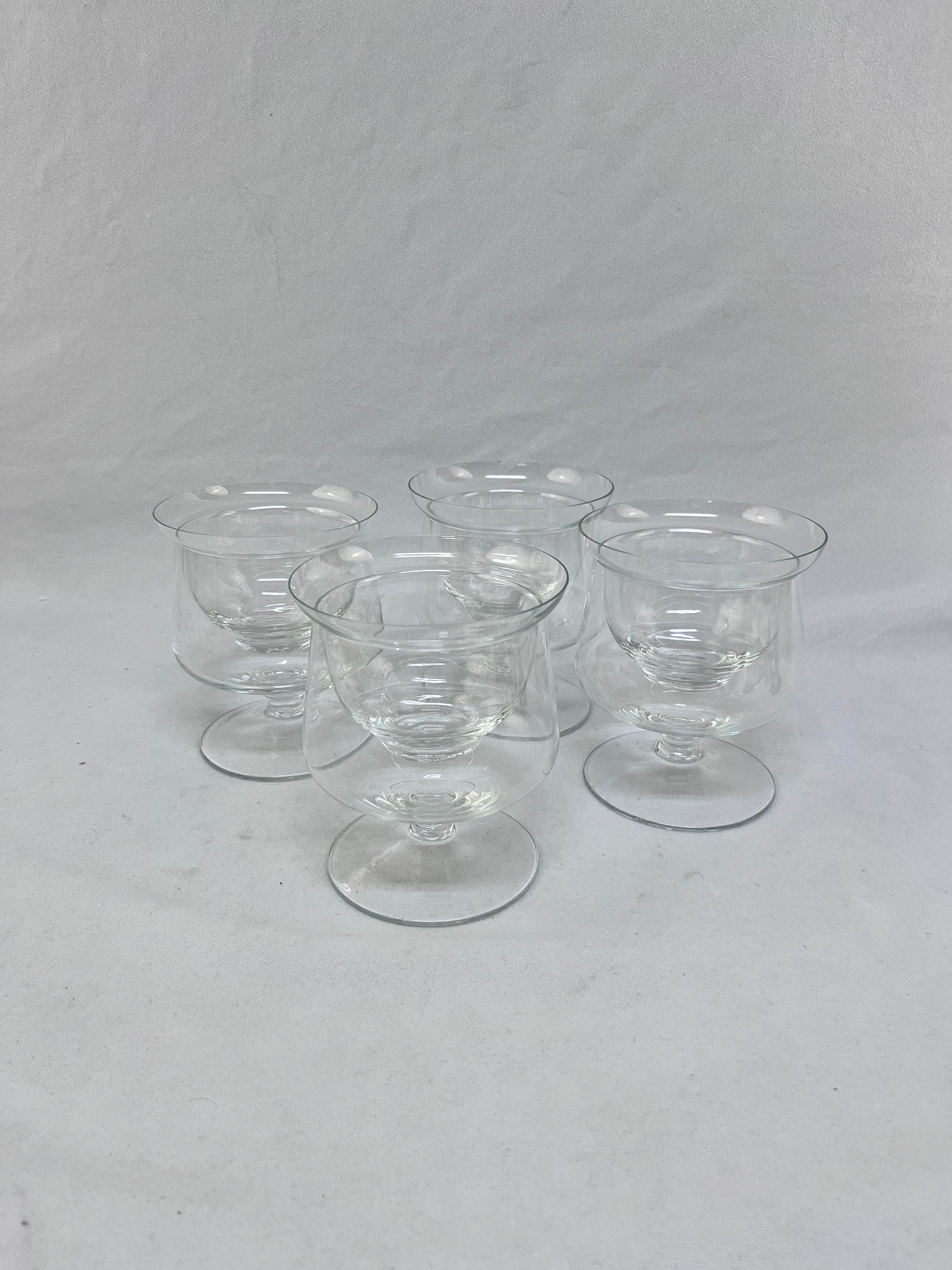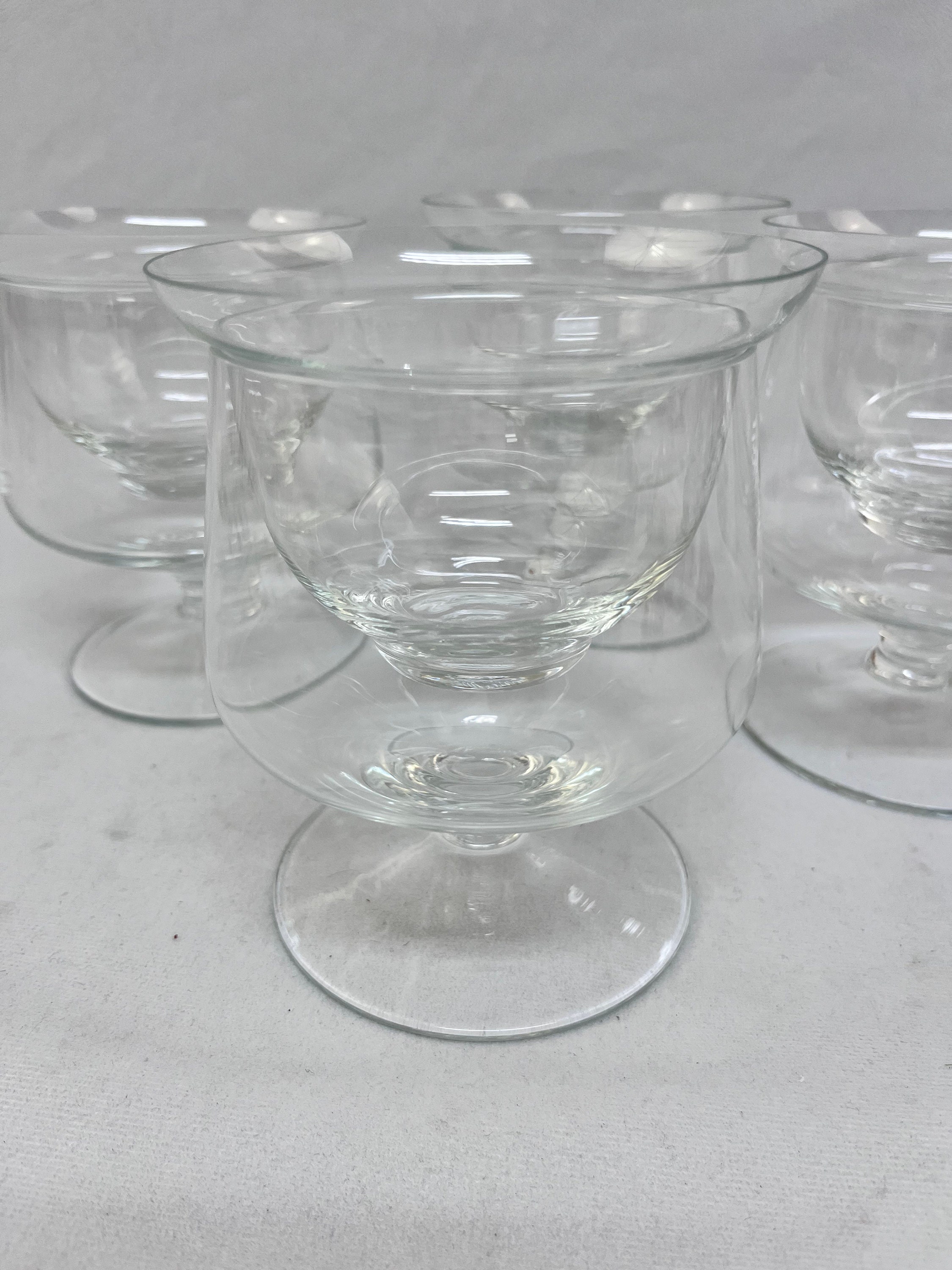 Set of 4 vintage crystal cocktail glasses with inserts. The set allows you to serve shrimp or fruit in the upper dish and have shaved ice in the lower dish to keep the shrimp or fruit cold. The base could also be used alone to serve sorbet, or cocktails. The glasses measure 4-3/4" tall and 3-1/8" in diameter at the rim and the inserts measure 4" tall and 2-7/8" in diameter. All 4 sets are in excellent vintage condition with no chips or cracks.