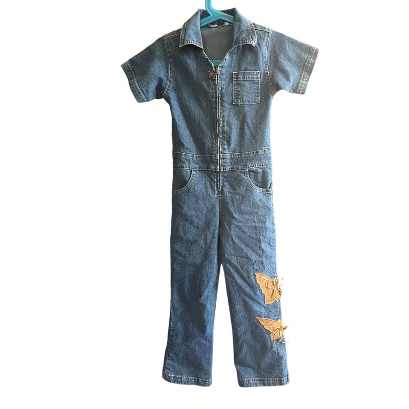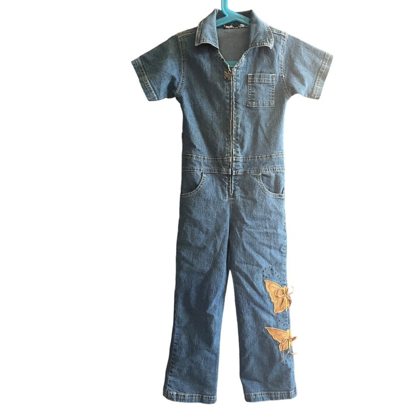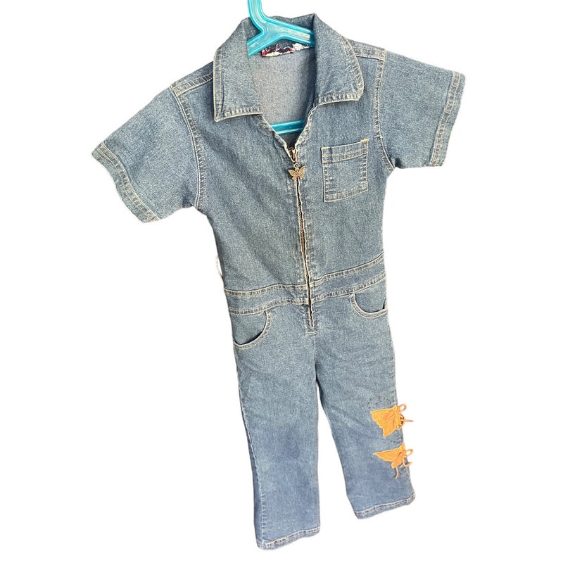 Be the first to review “Vintage Girls Y2K Butterfly Denim Jumpsuit Overalls XS”