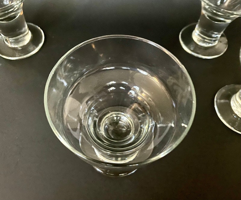 These feature a thick modern style stem and wide rim. Also great for desserts and ice cream.