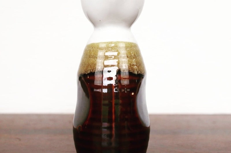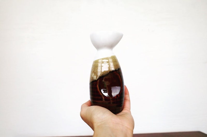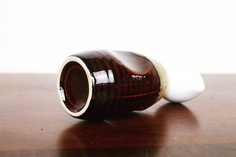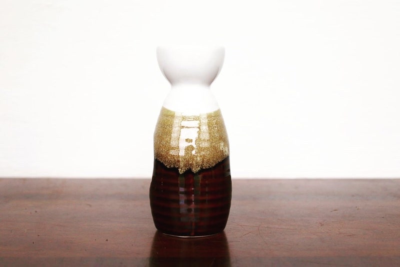 vintage | mcm brown & white stoneware sake bottle-sid-12300