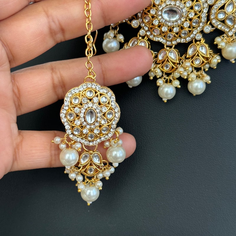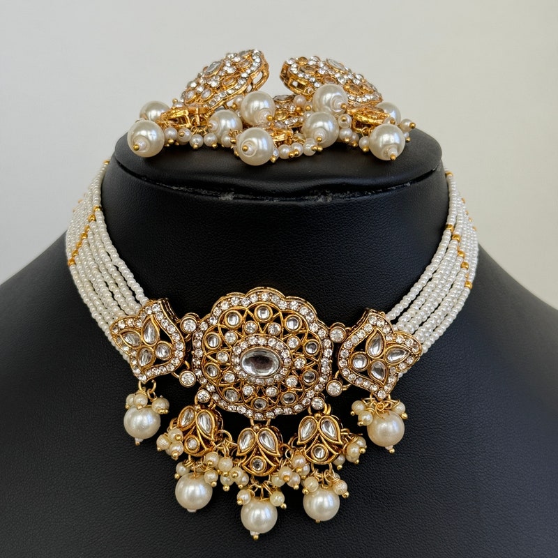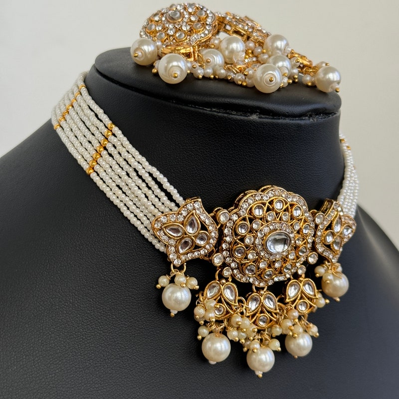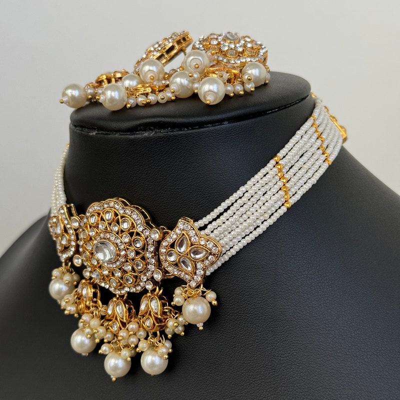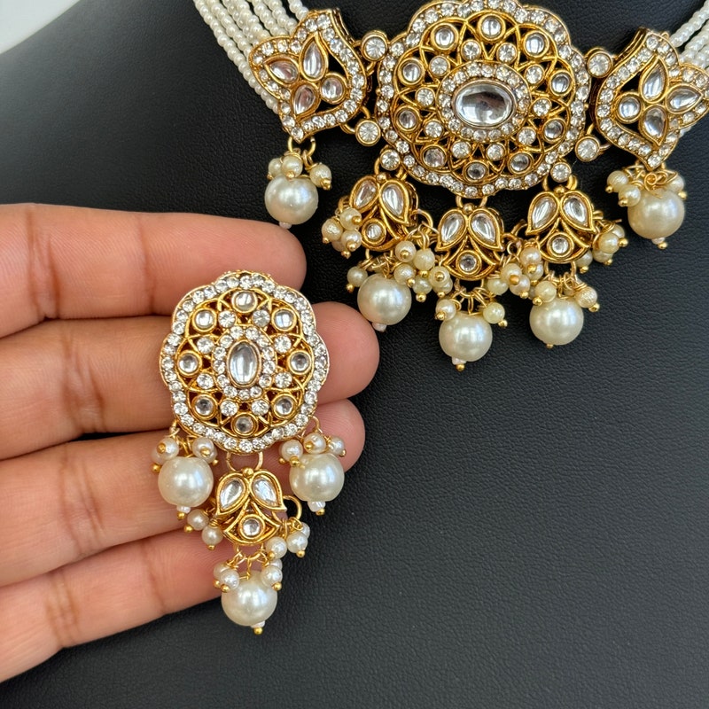 White Pearl Kundan Necklace Set/Kundan Choker/ Bollywood Jewelry/ Indian Pakistani necklace/ punjabi necklace/bridal necklace/indian wedding